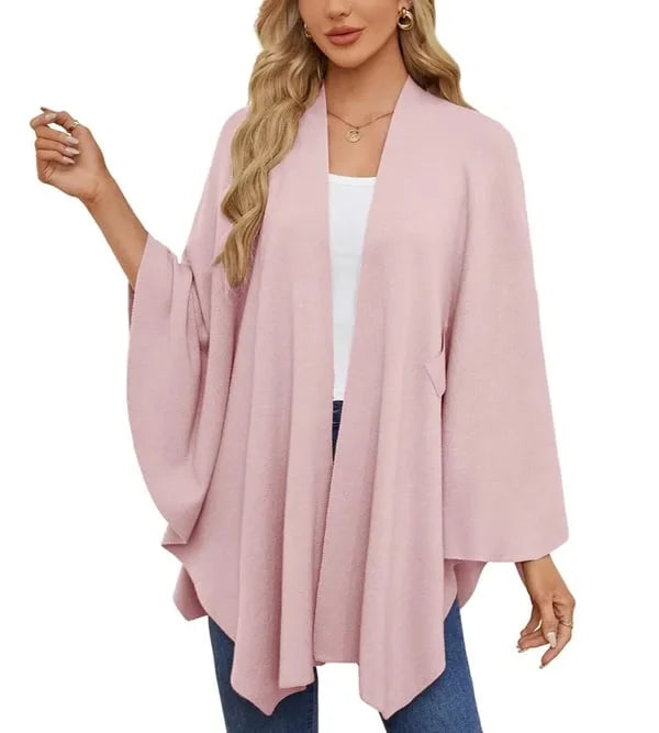 Autumn Women's Elegant Shawl Wraps Soft Open Front Poncho Sweater